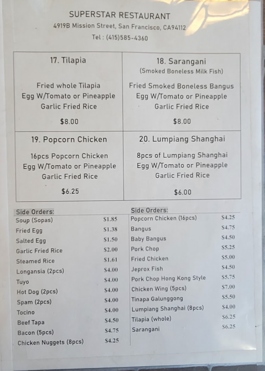 If you find yourself in San Francisco's vibrant Excelsior neighborhood, make sure to stop by Super Star Restaurant, a treasure trove of authentic Filipino flavors that captivates both locals and visitors alike. This cozy eatery, located at 4919 Mission St, has earned a reputation for serving up delectable, hearty meals that bring the comfort of Filipino cuisine to your table—all at an incredibly reasonable price.
